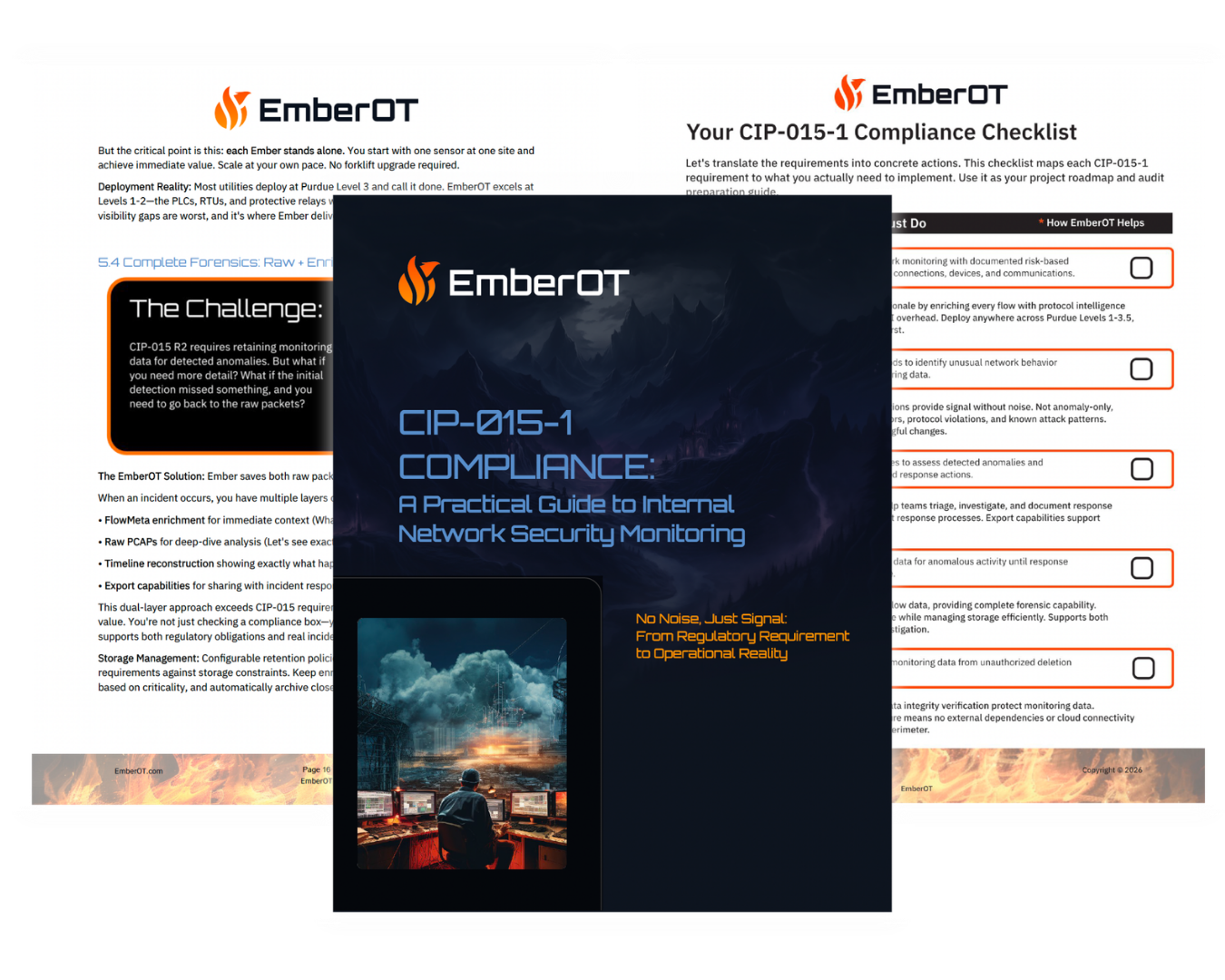 EmberOT created this guide to help critical infrastructure teams translate CIP-015 Compliance from a regulatory requirement into an operationally realistic program.